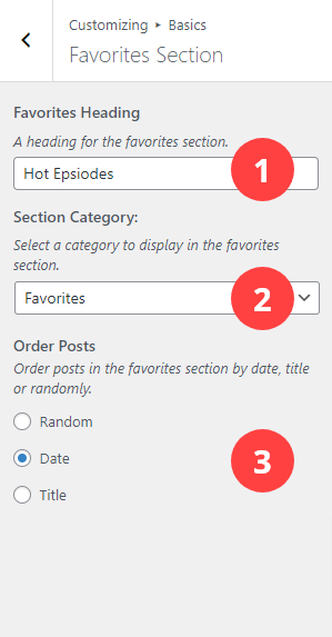 - Order: Order favorites section posts by date, randomly or by title.