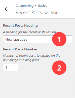 - Recent Posts Number: Enter the number of recent posts you would like to display on the homepage.