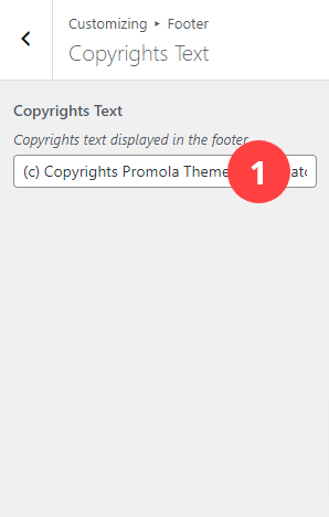 In the Footer panel you'll also find the Copyrights Text section. All settings are explained below.
