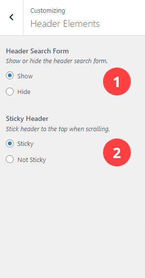 The Header Elements panel. All settings are explained below.