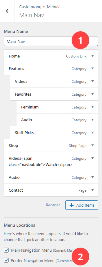 - Menu Locations: Select where you would this menu displayed, here we're displaying the same menu in both the header and footer.