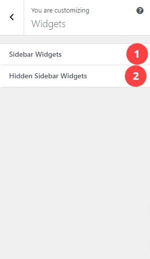- Hidden Sidebar Widgets: This is for widgets in the hidden sidebar, displayed when the burger menu icon in the header is clicked. The burger menu icon will not be displayed if no widgets are added to this section.